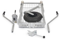 Gewichte bis zu 100 kg transportiert werden. Um eine hohe Zuladung für die Transportfahrt auf der Anhängerkupplung zu ermöglichen, sollten die beiden Handhebel, die 2 Stützen und das Rad mit Klemmrohr abgenommen und im Fahrzeug separat transportiert werden.